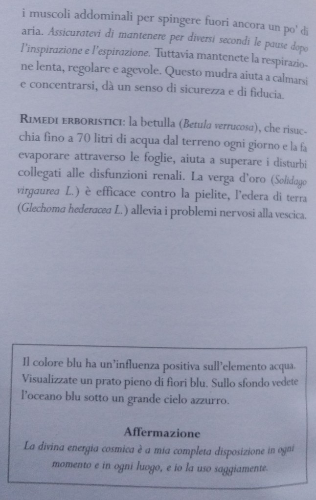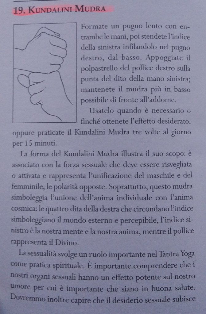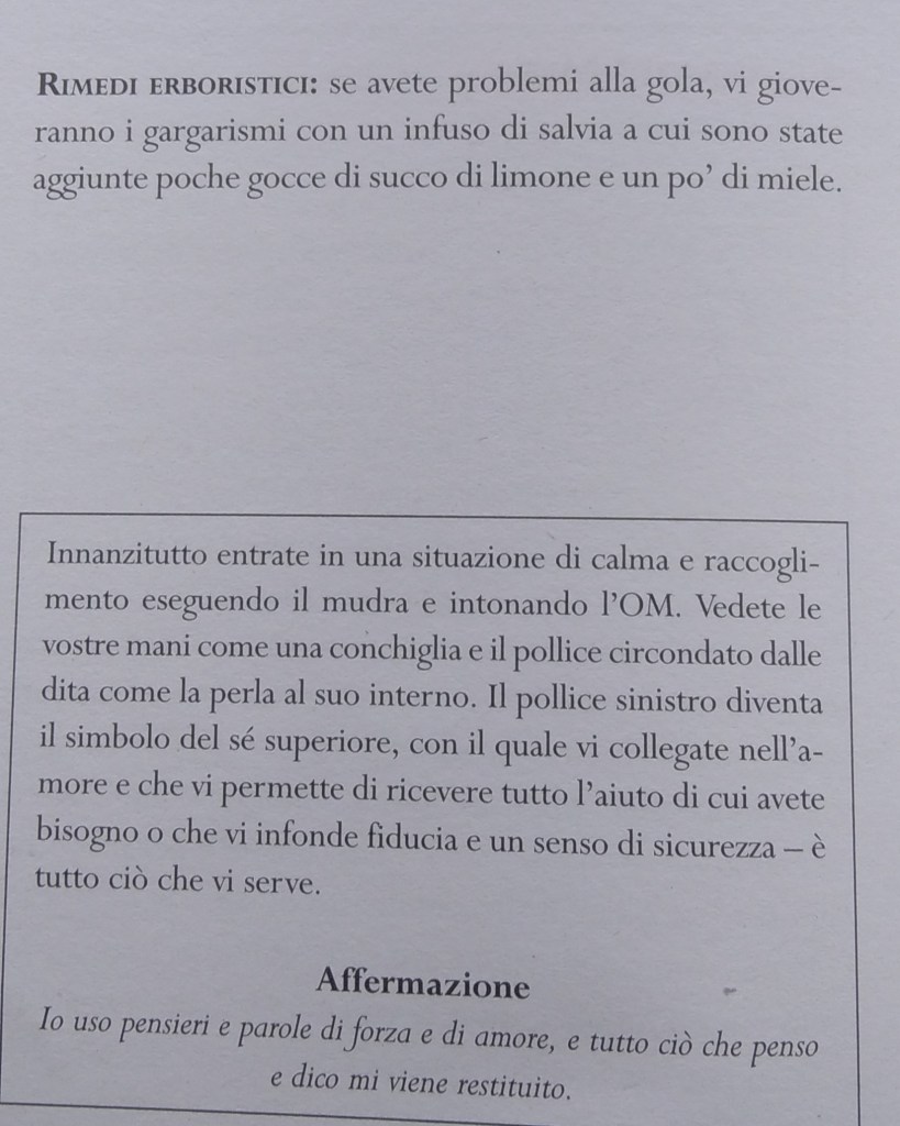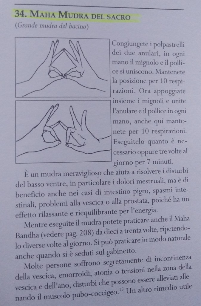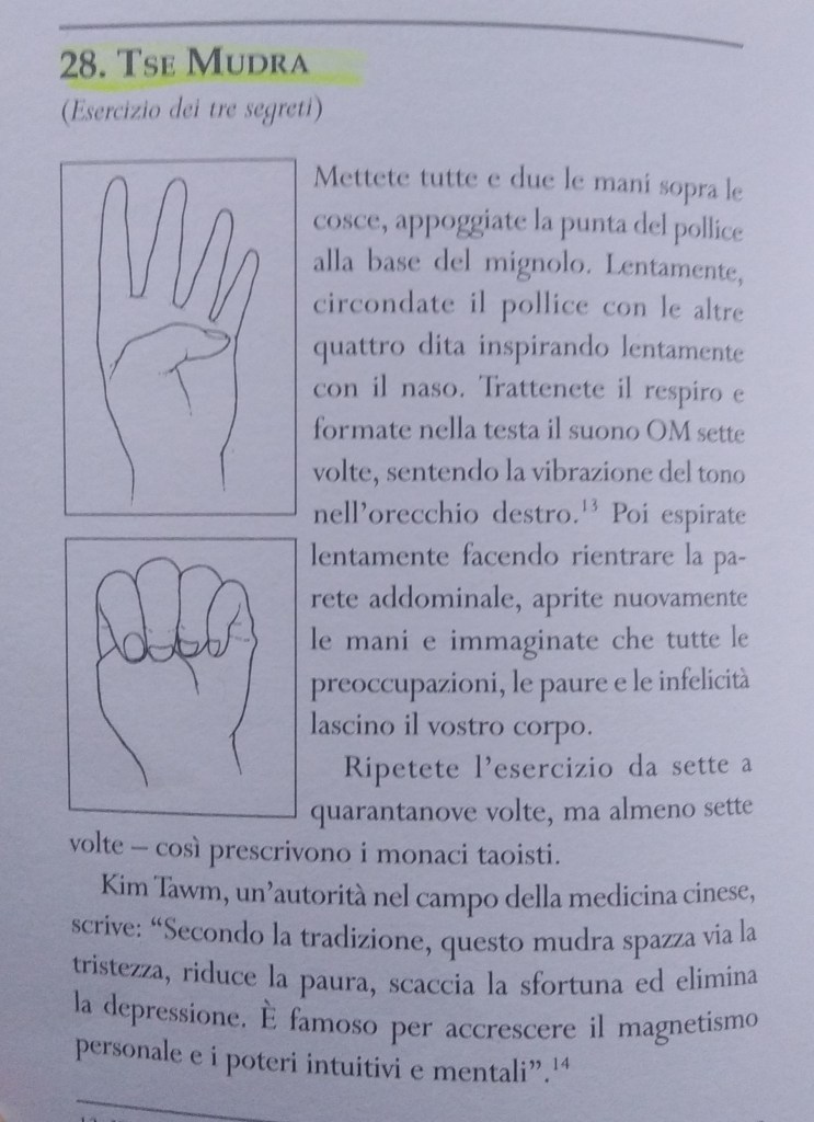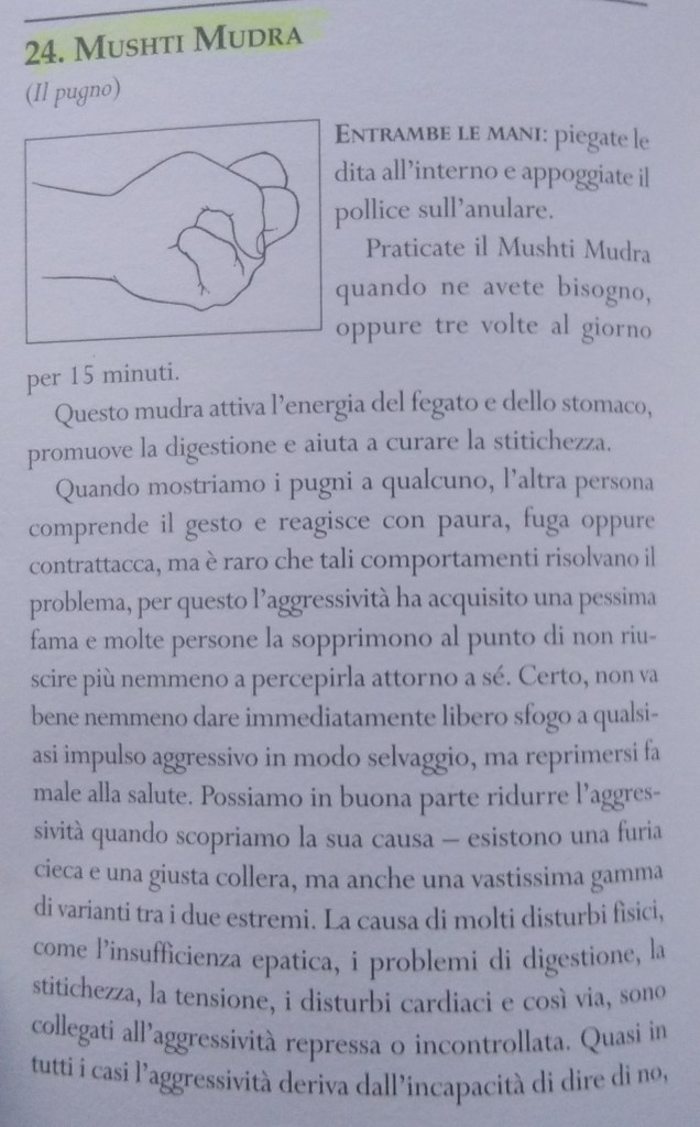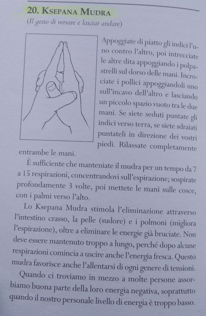 A volte abbiamo paura degli altri e delle loro reazioni, di conseguenza ci lasciamo manipolare e sfruttare. D’altro canto, facendo “i bravi” e servendo gli altri, vogliamo farci amare. I mudra ci possono aiutare a fare chiarezza nelle nostre relazioni, a eliminare la paura e a favorire l’azione del perdono. Se, nonostante tutto questo esaminarvi, vi accorgete di fare ancora e ripetutamente le cose “sbagliate”, voletevi bene, coccolatevi e, soprattutto, ridete di voi invece di criticarvi o di sgridarvi. C’è sempre una “prossima volta” per riprovarci e fare le cose come si deve.