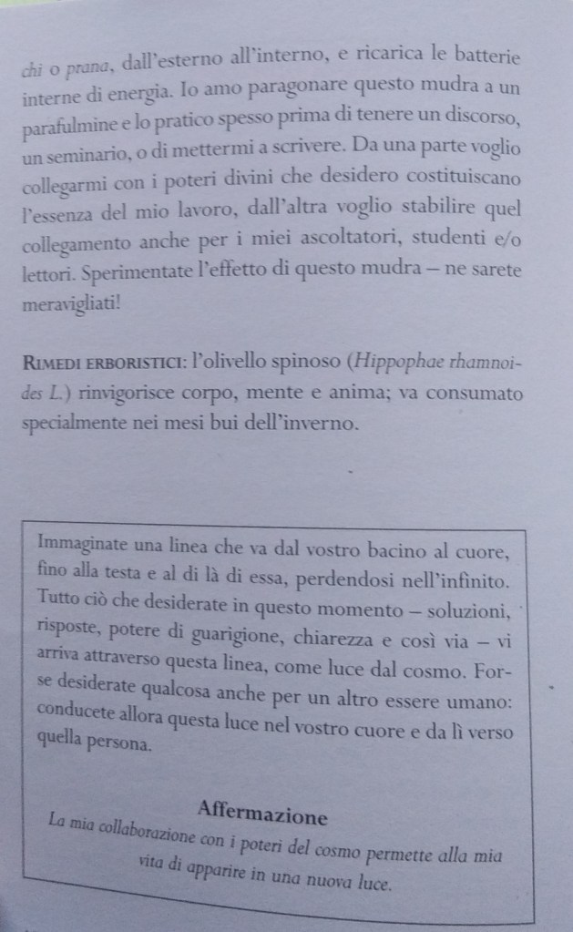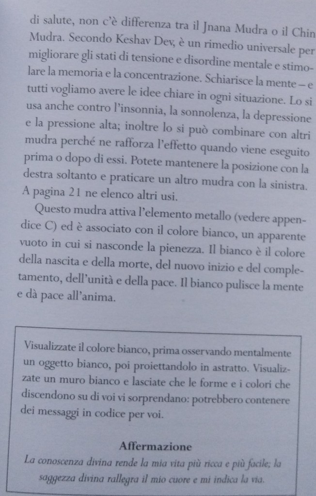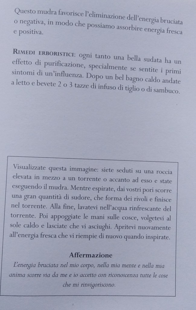 I mudra che ora vi presenterò vengono usati soprattutto per guarire o alleviare disturbi fisici, ma combinati con le visualizzazioni e le affermazioni influenzano anche la nostra mente e il nostro atteggiamento emotivo verso la vita.